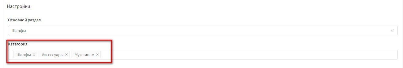 Для этого в интерфейсе товара выведена группа "Настройки". Она состоит из полей (скриншот):