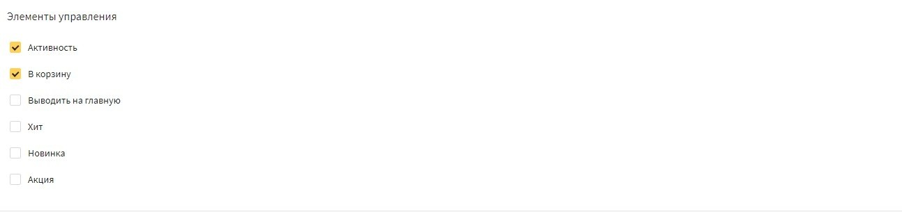 - "Активность" - параметр, отвечающий за вывод товара на сайте