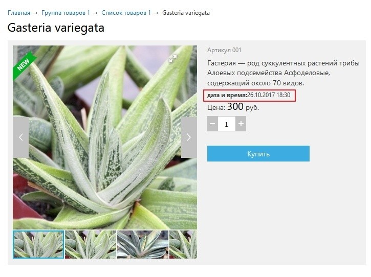 Поле подключается только в базовой карточке товара.