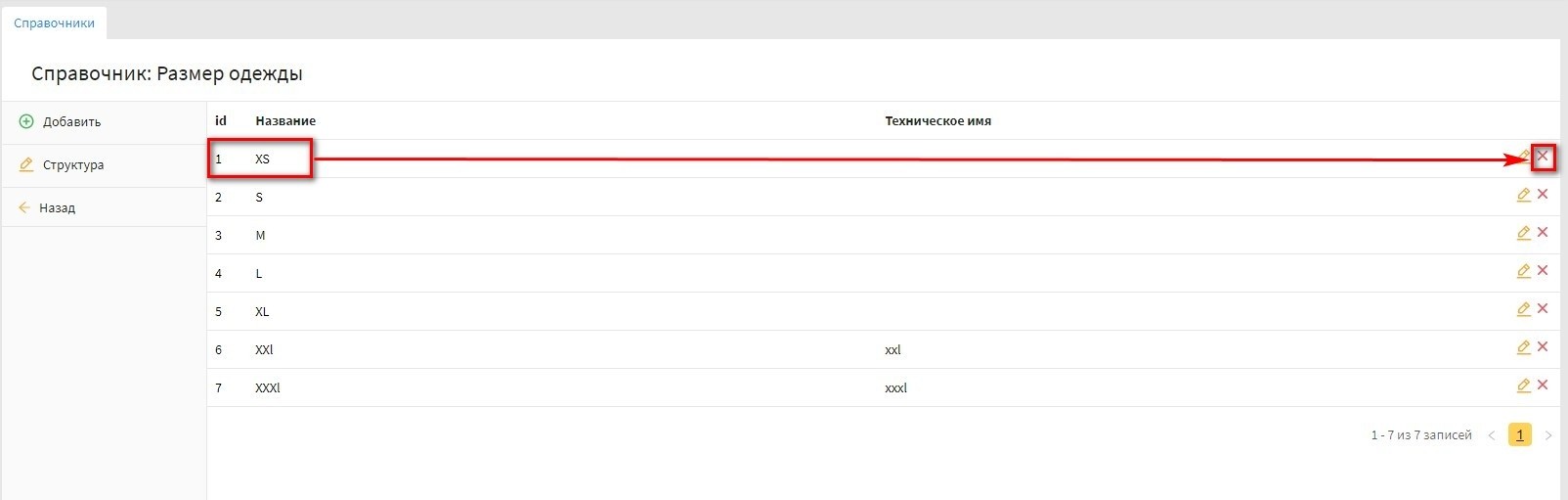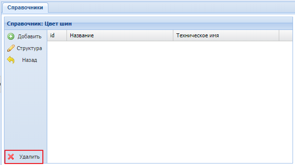 - выбираем удаляемый элемент справочника и нажимаем на иконку удаления. Скриншот