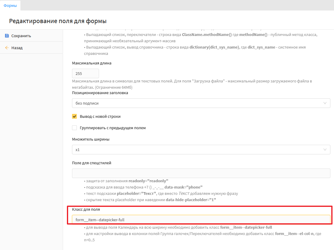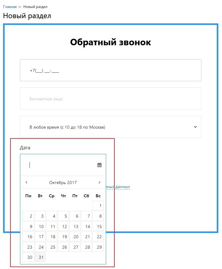 В результате поле типа "Дата" будет на всю ширину сайта. Скриншот.