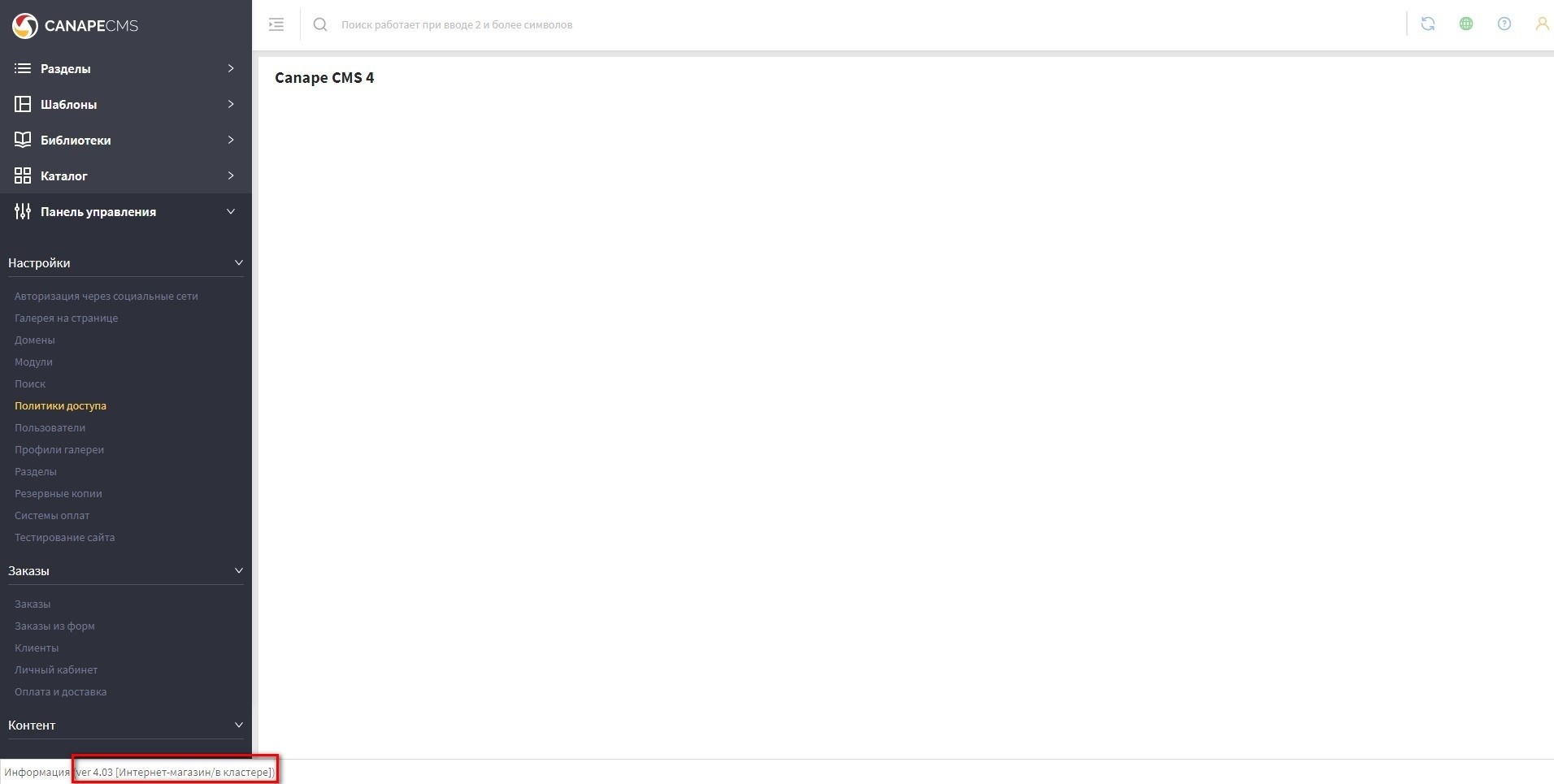 Версию Canape CMS можно посмотреть непосредственно в CMS, в левом нижнем углу - Скриншот.
