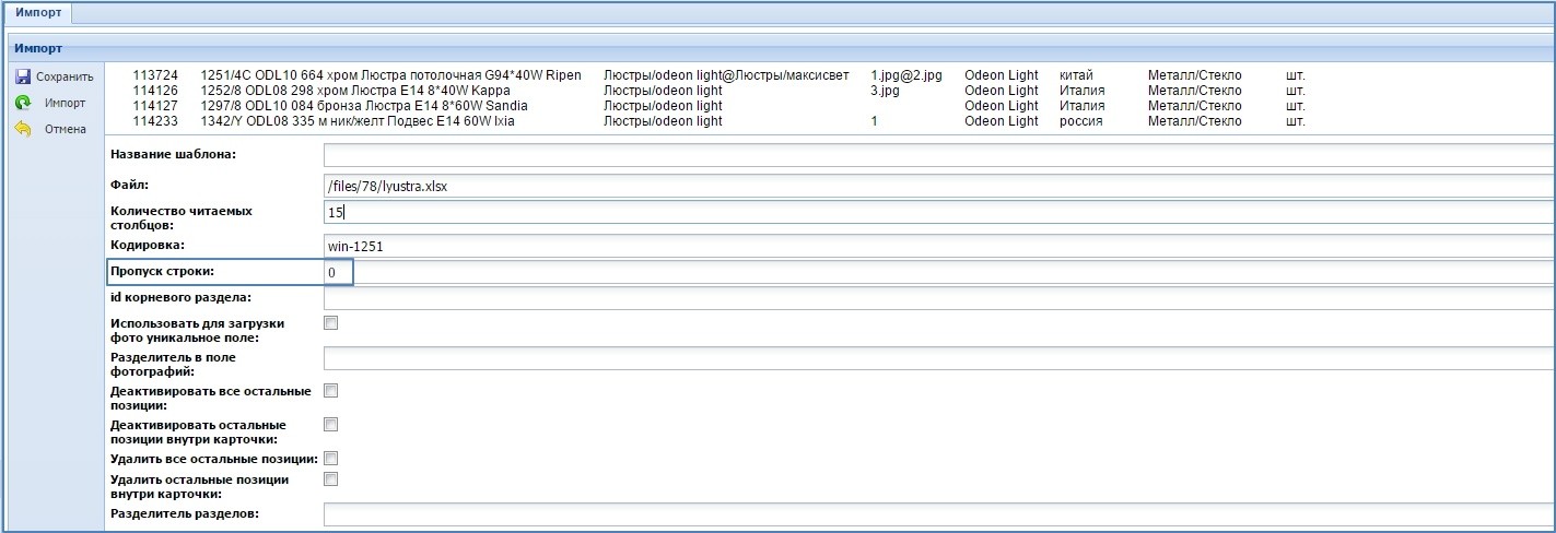 В данном поле задаем количество строк, которые будут пропущены для импорта. Скриншот