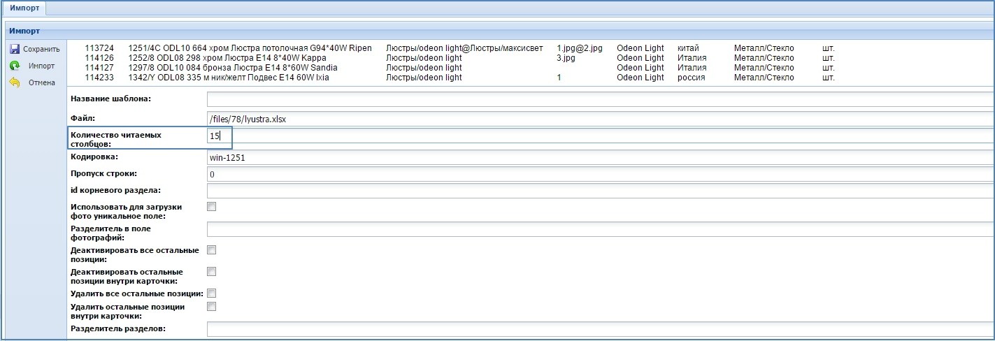 В данном поле задаем количество столбцов, которые должны попасть в шаблон импорта. Даже если столбцы пустые, они все равно будут считаться. Скриншот