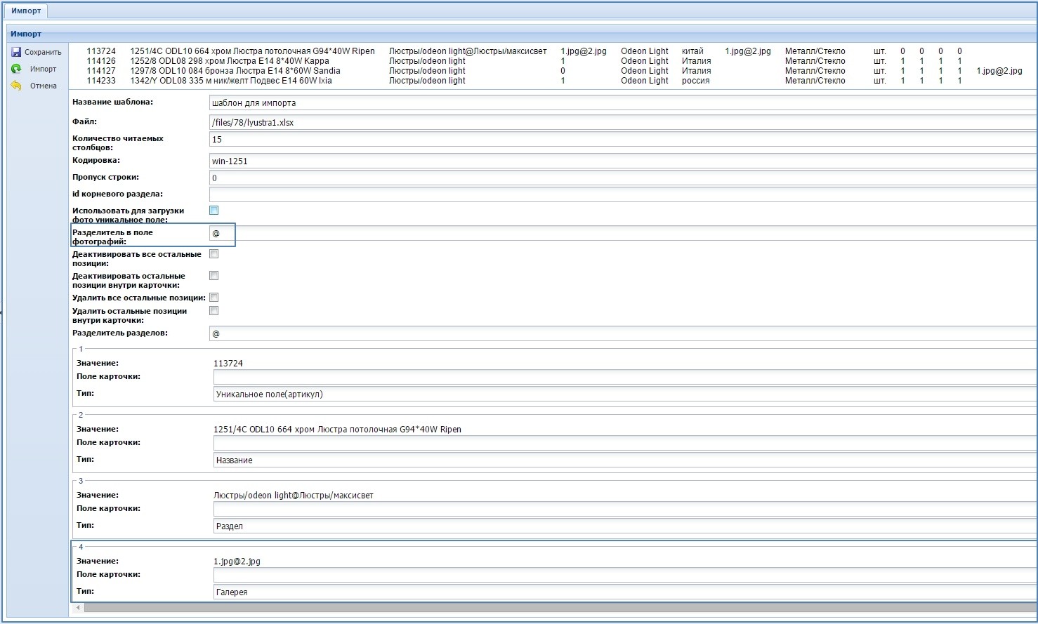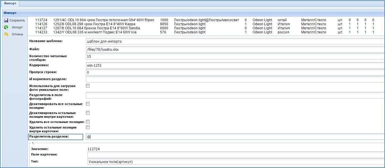 С его помощью администратор сайта может осуществить импорт товаров на сайт из файла импорта, настроив связь между полями файла и полями карточки товара.