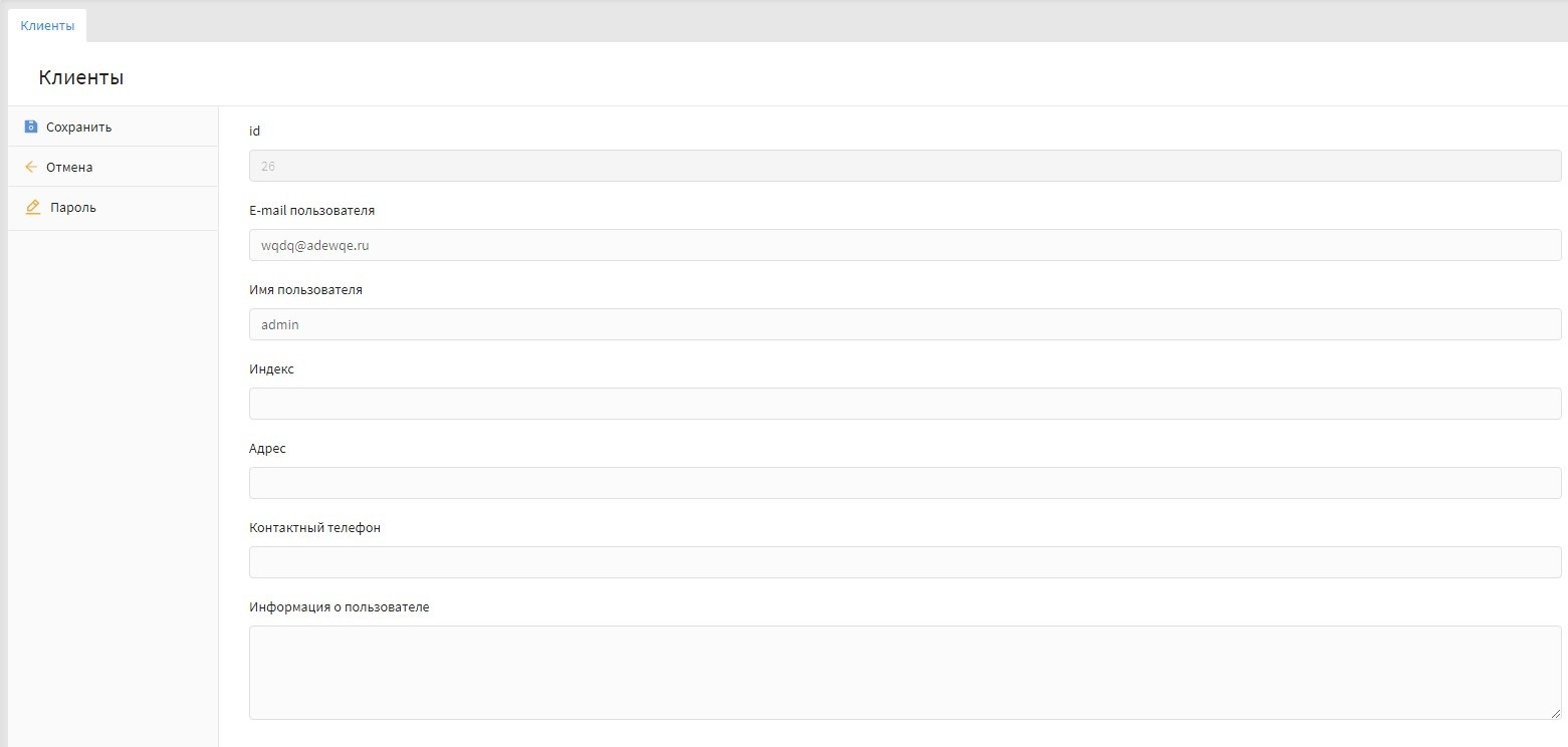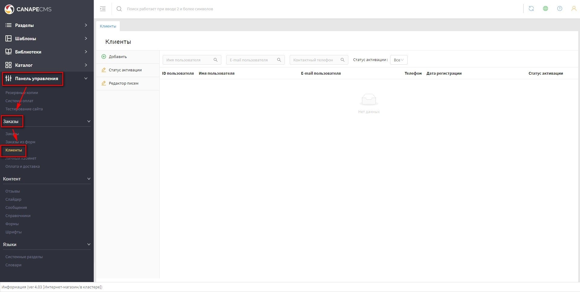 В 19.0 версии Canape CMS добавлен модуль "Клиенты". Он предназначен для хранения и редактирования данных зарегистрированных посетителей сайта, в нем так же располагаются дополнительный настройки для модуля.