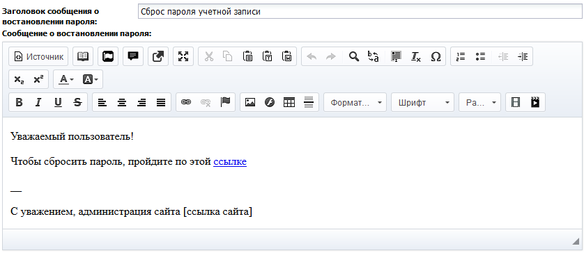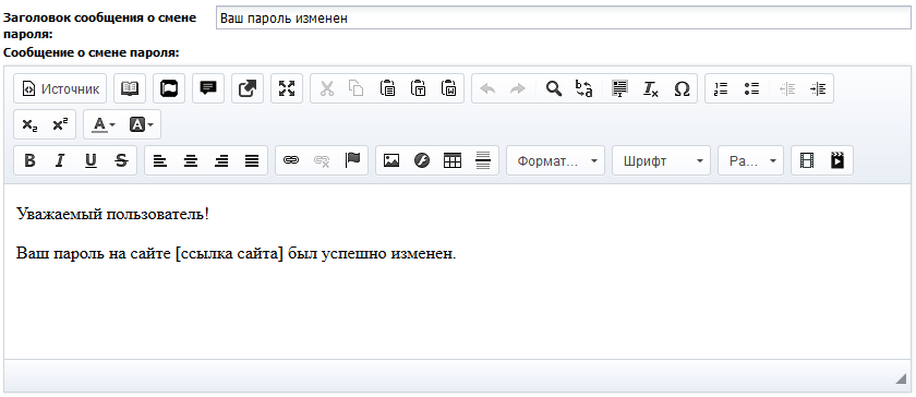 Редактор писем - при нажатии открывается интерфейс по редактированию шаблонов писем модуля. Подробнее