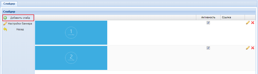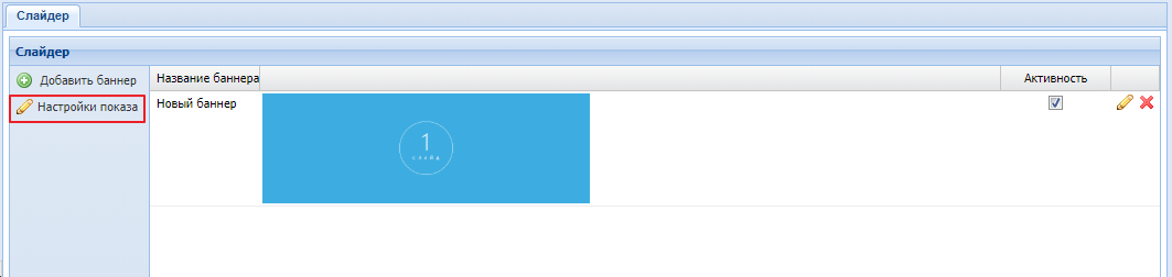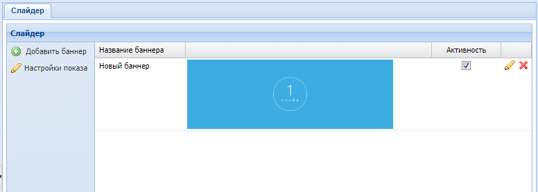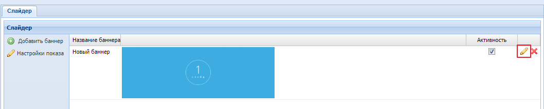 Активность - галочка, отвечающая за активность баннера, по умолчанию установлена.