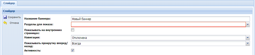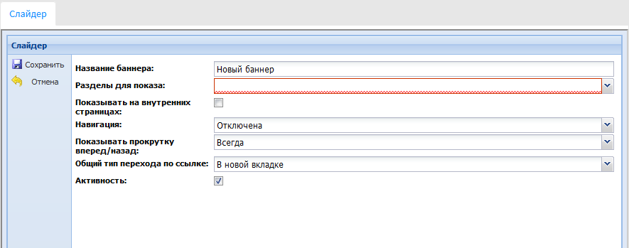 Название баннера - в поле вводится название баннера. По умолчанию задается название "Новый баннер"