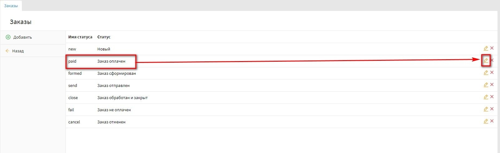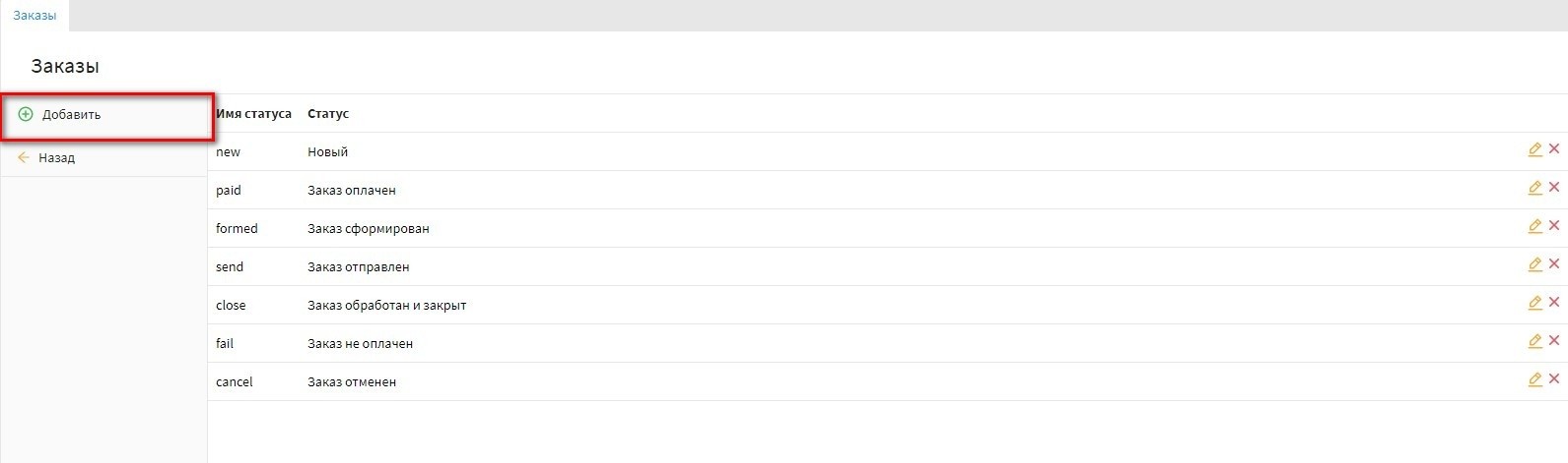 Статусы - при нажатии открывается интерфейс по редактированию статусов для заказов. Подробнее