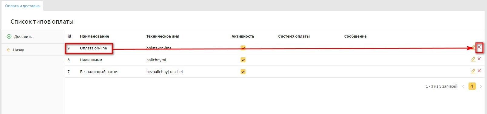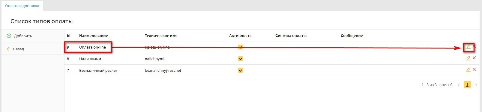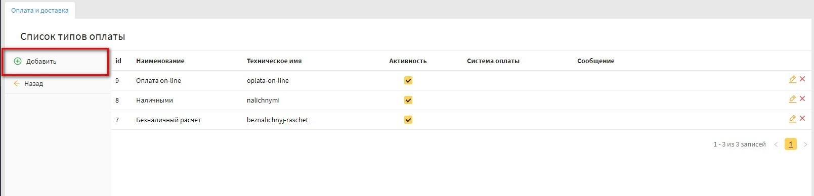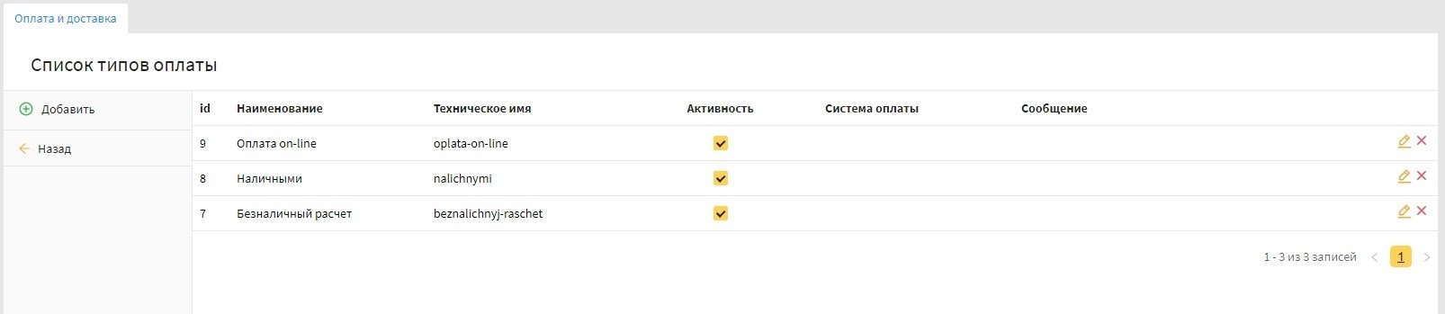 Тип оплаты - при нажатии открывается интерфейс по редактированию тип оплат для формы "Оформления заказа". В 34 версии функционал перенесен в новый модуль "Оплата и доставка"