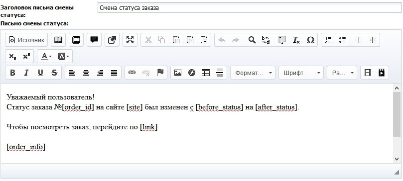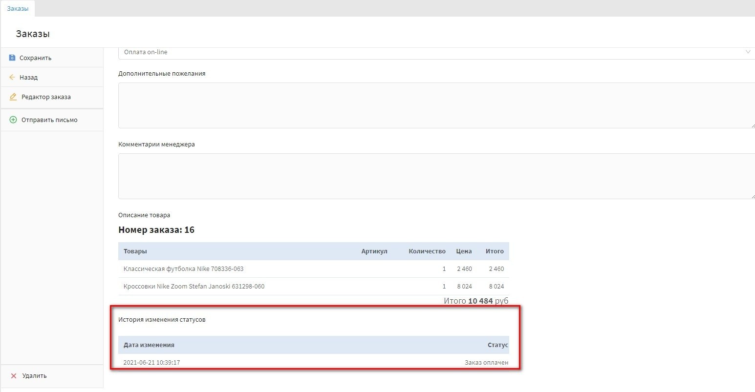 Данный блок появляется на форме редактирования заказа в случае смены статуса у заказа.