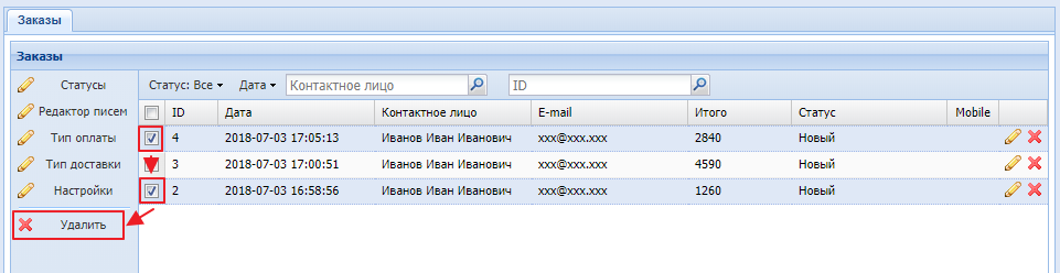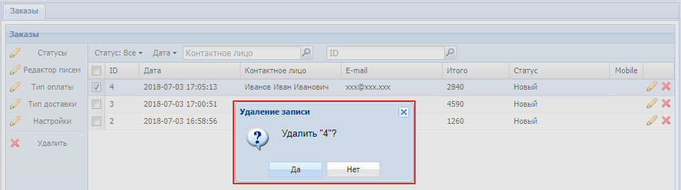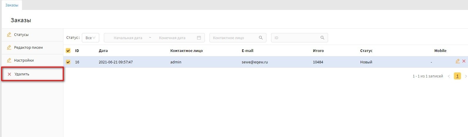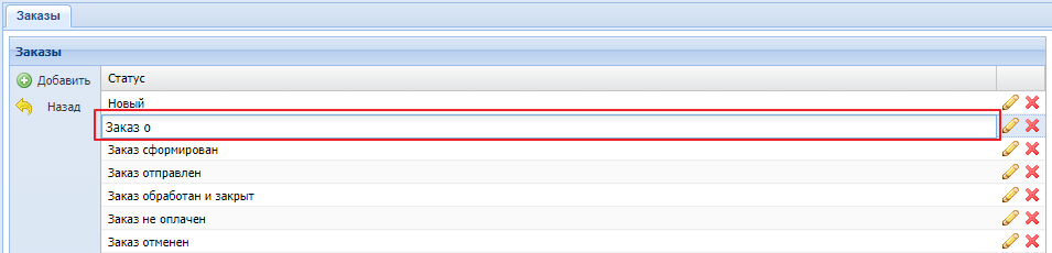 в центральном блоке откроется вкладка "Заказы", где необходимо дважды кликнуть по нужному заказу мышкой или нажав иконку "Редактировать"