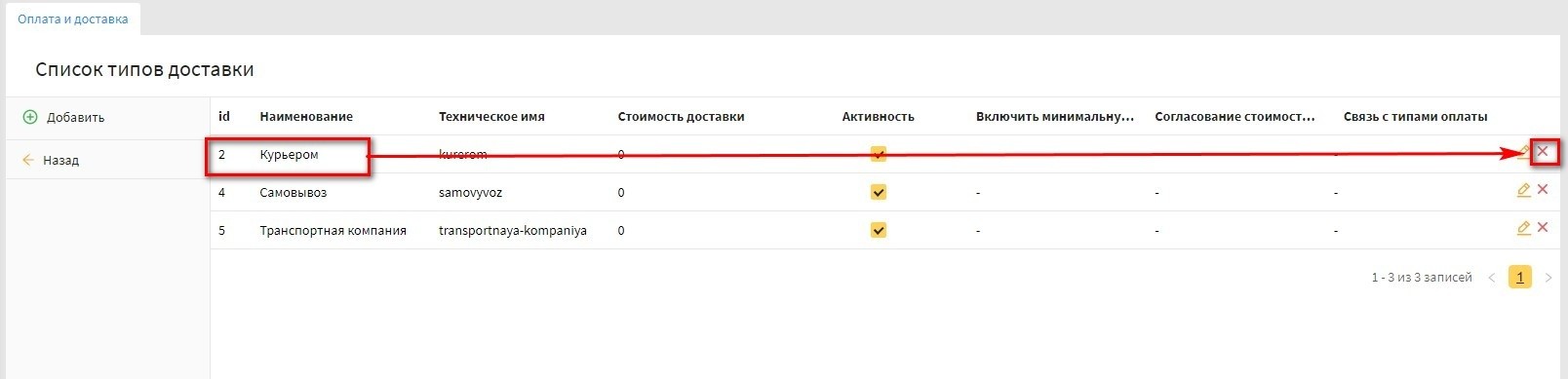 Чтобы отредактировать тип доставки необходимо один раз кликнуть мышкой по названию, и в появившейся строке ввести название и затем кликнуть по любой области экрана для сохранения изменений.