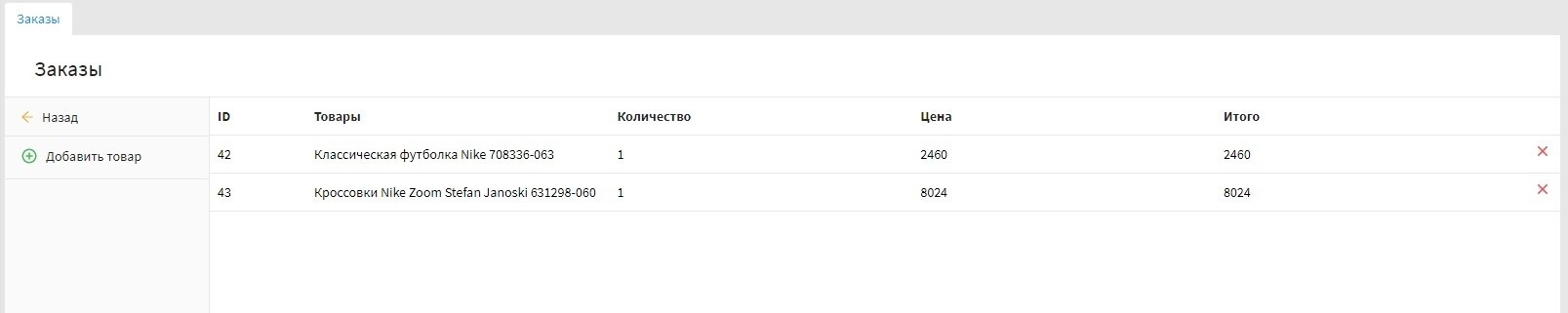 В интерфейсе "Редактор заказа" можно редактировать колонки "Количество" и "Цена", при редактировании этих параметров происходит автоматический пересчет итоговой суммы. Можно так же удалить любой товар, нажав напротив него иконку "Удалить". После внесения всех изменений на форме редактирования заказа нажмите "Сохранить".