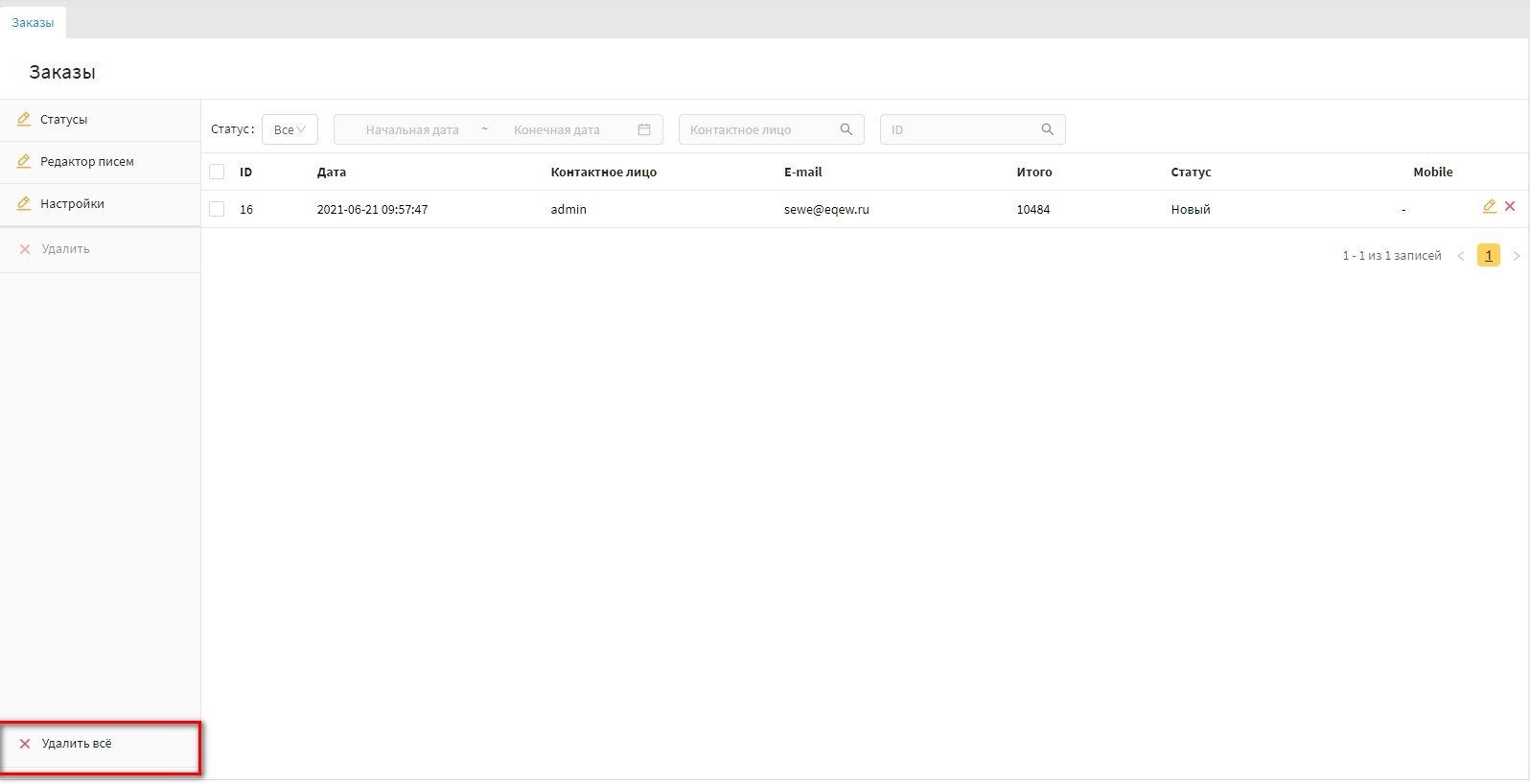Максимальное число заказов на одной странице (cms) - настройка отвечает за количество выводимых заказов на 1 странице в CMS. По умолчанию стоит значение 100.