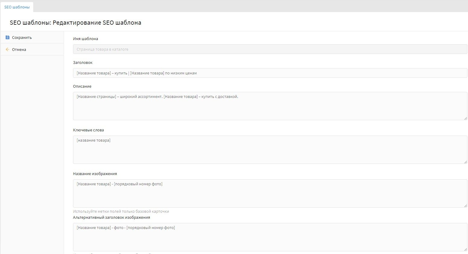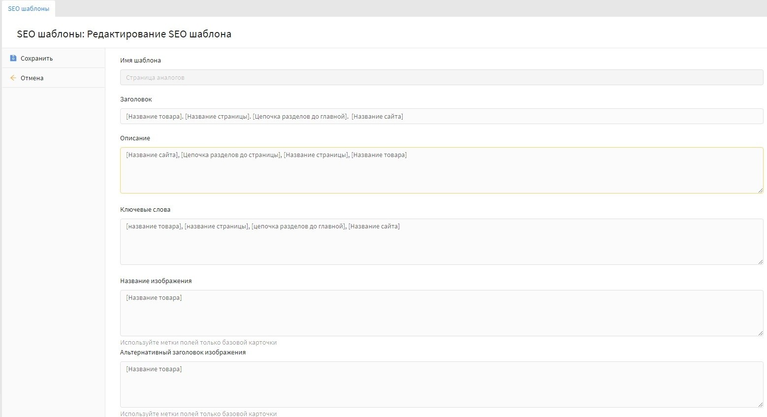 Внимание! Мы не рекомендуем вам самостоятельно редактировать данные SEO шаблонов, т. к. требуются знания определенных нюансов, лучше доверить это профессионалам.