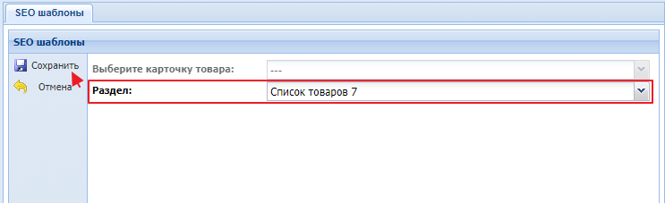в открывшемся интерфейсе, в поле "Раздел" выбираем нужный раздел и нажимаем кнопку "Сохранить". Скриншот.
