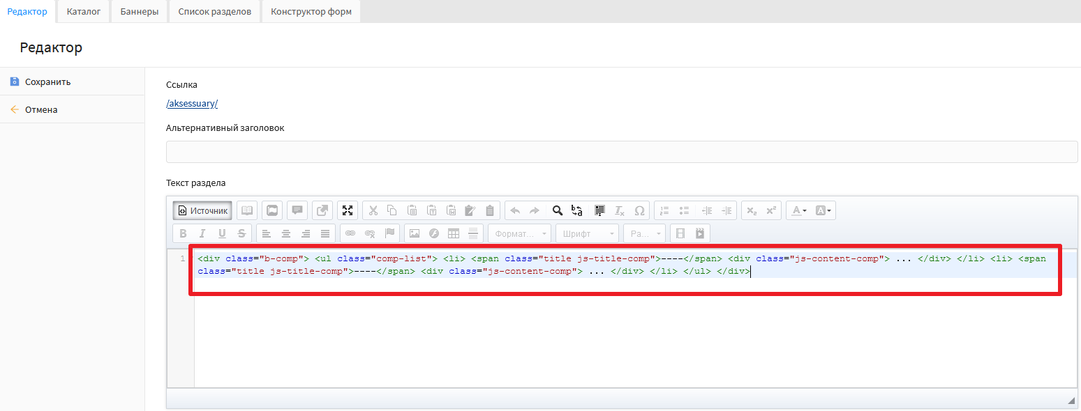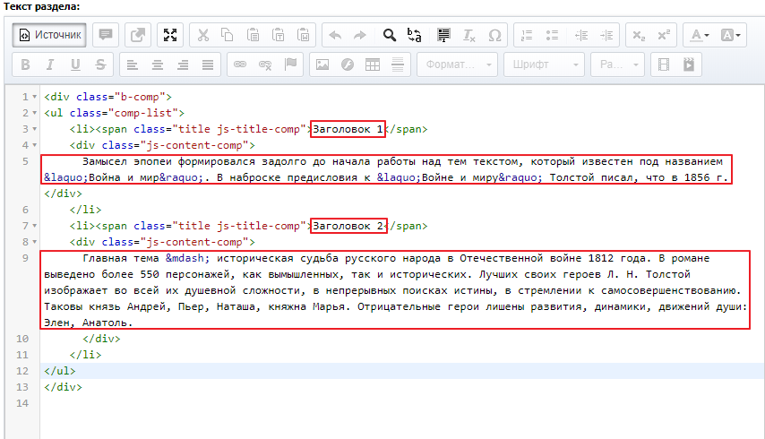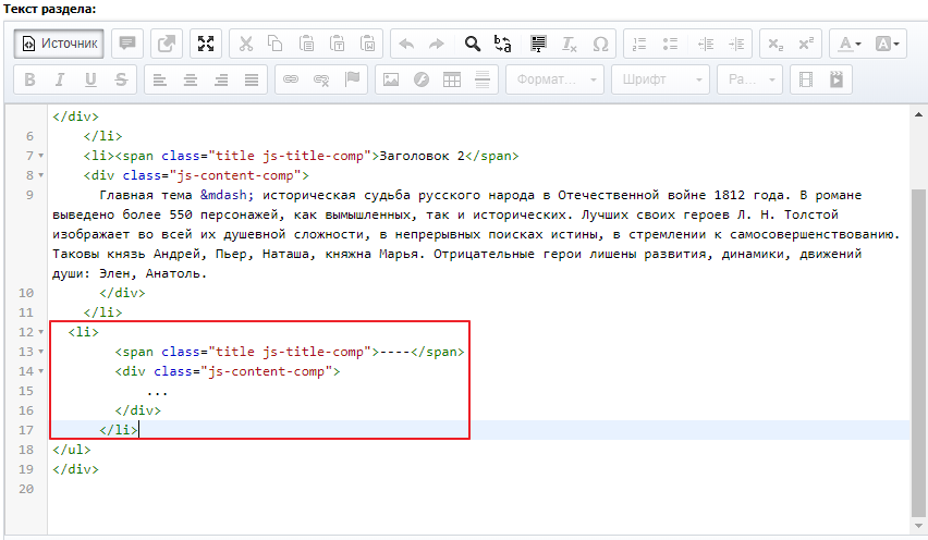 в <div class="js-content-comp"> ...</div> вместо ... добавляем основной текст.