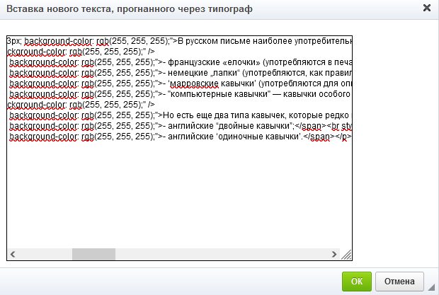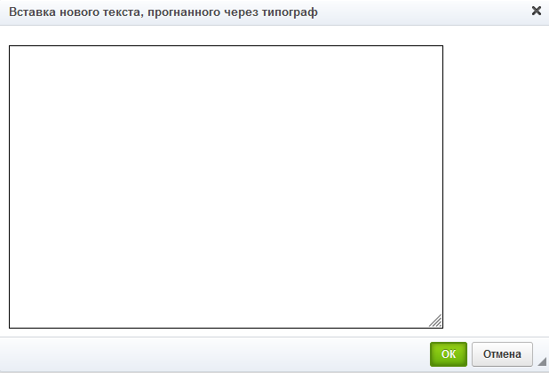 в открывшемся окне введите вручную или вставьте текст, который необходимо оттипографить. Скриншот ;