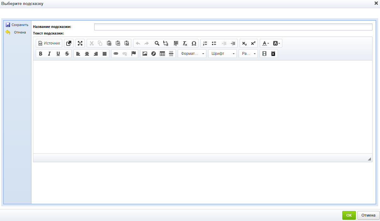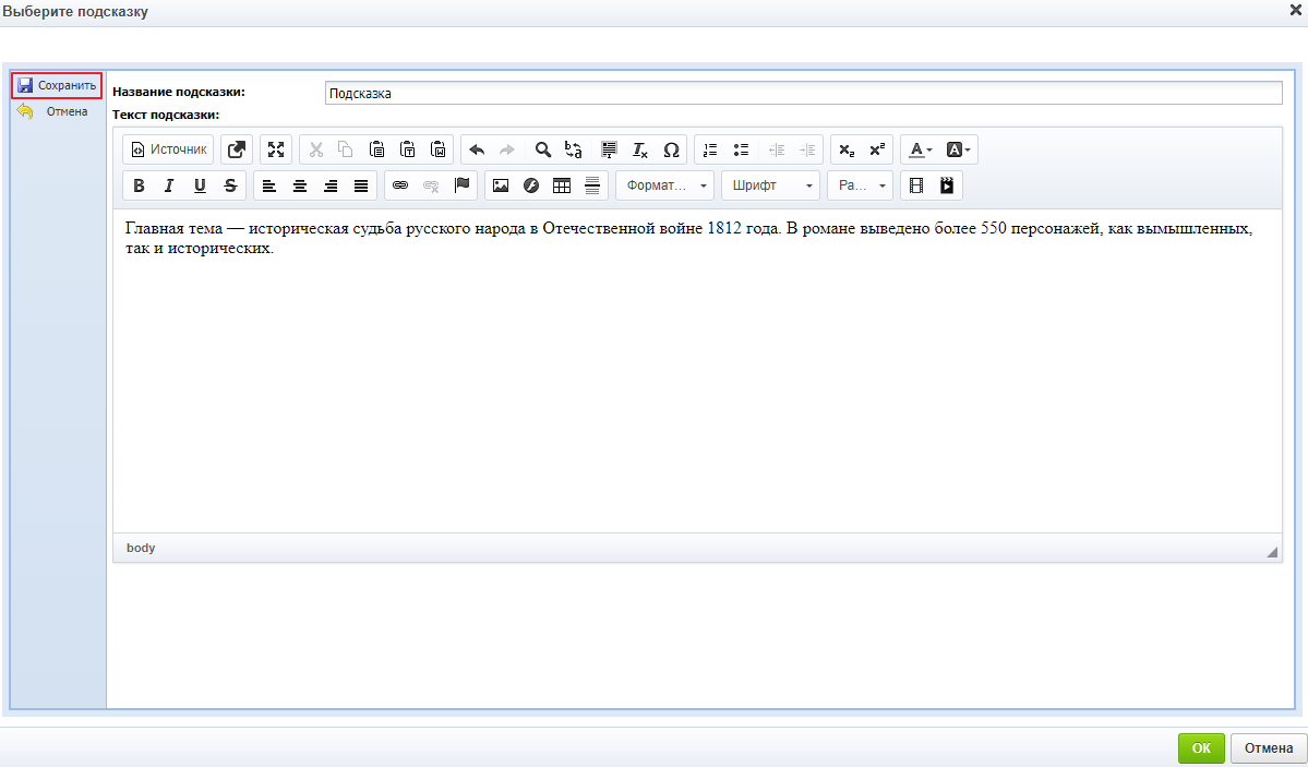 кнопка "Сохранить" - при нажатии сохраняются изменения, и подсказка добавляется в список