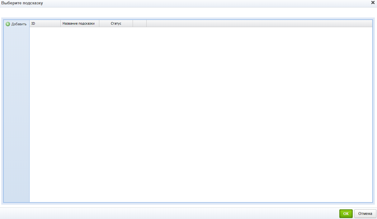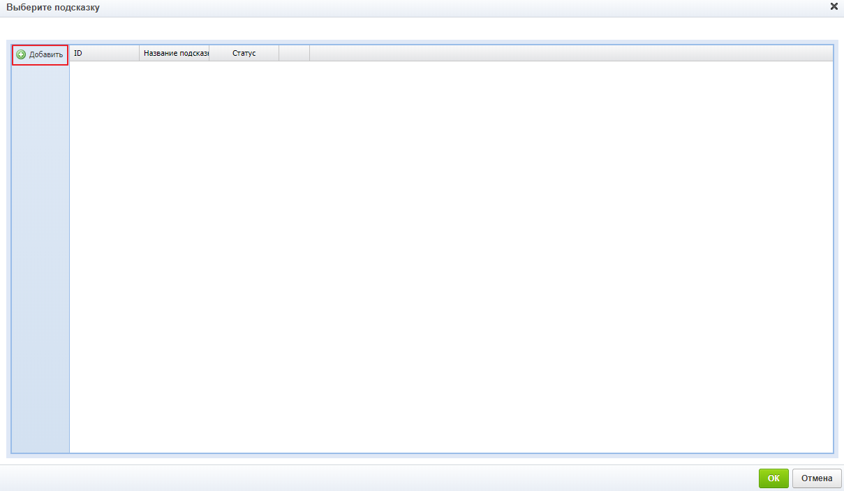кнопка "Добавить" - при нажатии на кнопку появляется интерфейс добавления подсказки