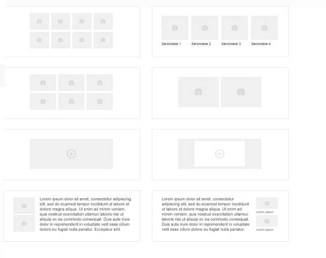 Изображения и видео - 8 блоков для отображения изображений и видео контента. Скриншот
