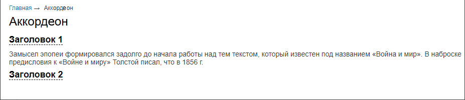 Для более красивого отображения контента на сайте добавлена возможность установки аккордеона на страницу. По умолчанию закрыты все элементы, по клику на них можно их раскрыть.