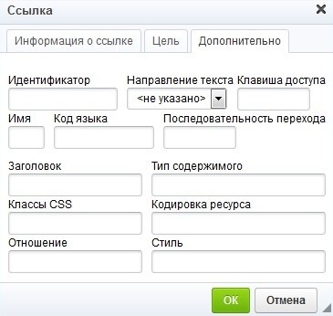 Данная вкладка отвечает за подробные настройки ссылки на документ, которые на сайте не отображаются, но играют определенную роль для поисковиков. Пользоваться ими без специальных знаний не рекомендуется.
