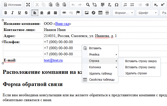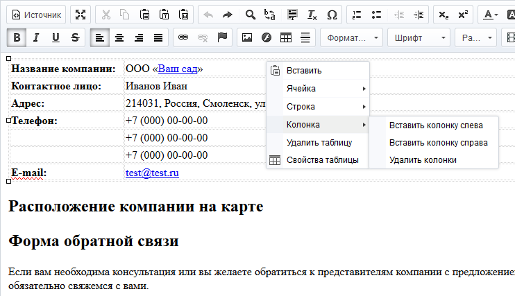 Чтобы воспользоваться функциями редактирования таблицы, установите курсор в одной из ее ячеек, нажмите правую кнопку мыши. Появится контекстное меню, где будут доступны функции редактирования.
