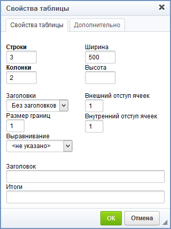 Поле «Итоги». Здесь вы можете повторно указать название таблицы либо дать краткое описание таблицы. На сайте этот текст не будет виден, но он будет в коде, что важно для поисковика и продвижения сайта.
