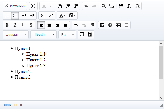 Эта функция также позволяет создавать многоуровневые списки. Для этого необходимо выделить элементы списка, которые будут вложены в один из пунктов, и нажать на кнопку создания отступа. Скриншот