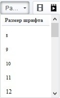 Здесь осуществляется выбор размера шрифта. Для этого выделите необходимый фрагмент текста, нажмите на кнопку на панели и выберите подходящий размер шрифта из выпадающего списка. Скриншот