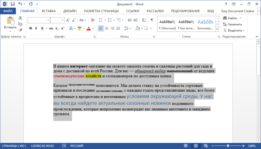 Если вам не нравится, как вы отредактировали текст, или вы уже вставили редактированный, то данная функция поможет привести его в «естественное» состояние. Выделите часть текста и нажмите «Убрать форматирование».