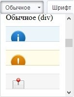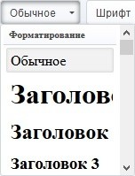Если вы только что открыли раздел, где собираетесь оформлять текст, название кнопки данной панели будет отображаться согласно приведенной выше иконке. Если же курсор уже установлен в какую-то область текста, на кнопке может быть написано «Обычное», «Заголовок» и т.п. — в зависимости от типа установленных в тексте тегов. Если вы затрудняетесь с поиском данной кнопки, ориентируйтесь на стоящую рядом с ней панель выбора шрифта.