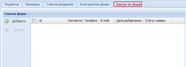 С функционал работы панели "Заказы из форм" можно ознакомится тут.