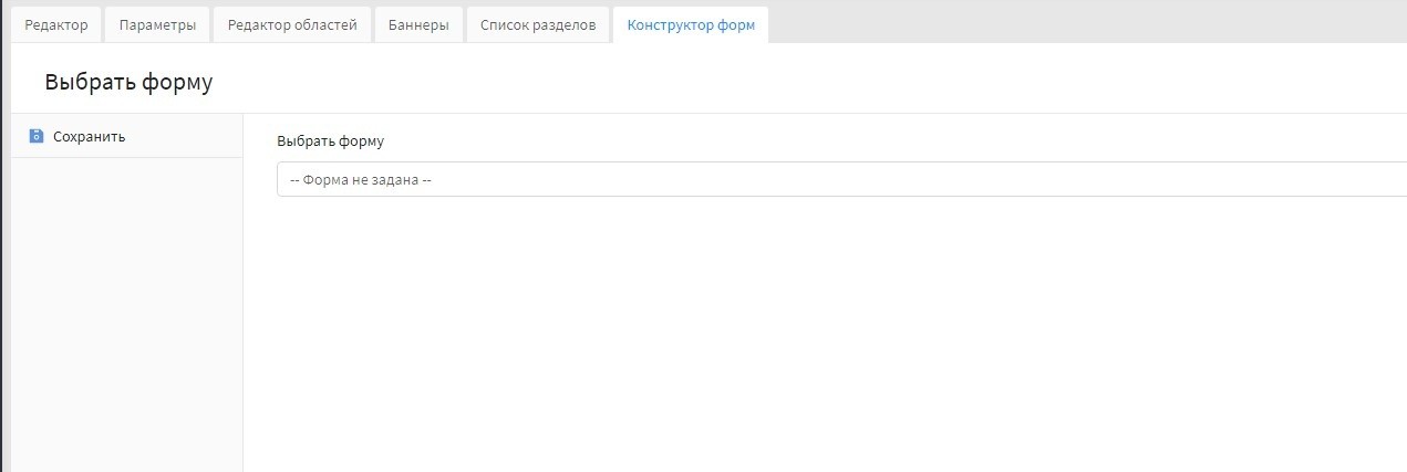 Вкладка "Конструктор форм" предназначена для подключения формы в разделе. Скриншот