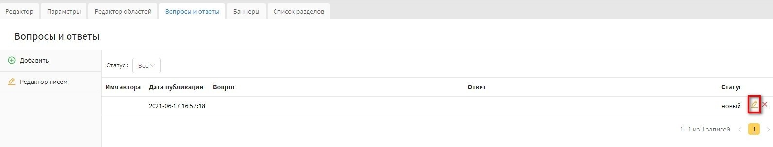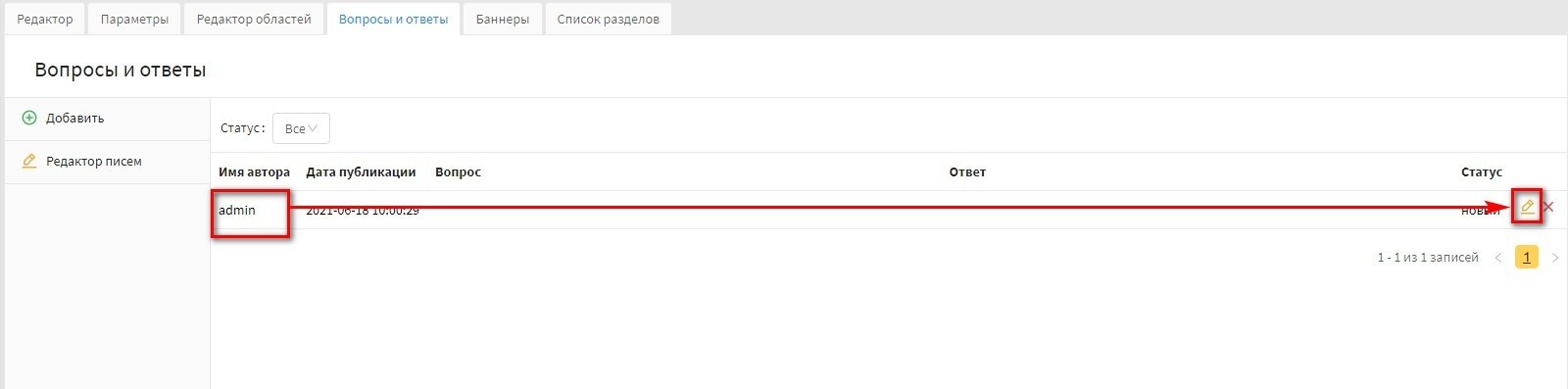 найдите вопрос со статусом "Новый" и нажмите на иконку "Редактировать". Скриншот
