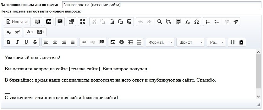 2. Автоответ пользователю, после оставления вопроса. Скриншот Данное сообщение приходит автору вопроса на сайте сайта, после того как отправлена форма.