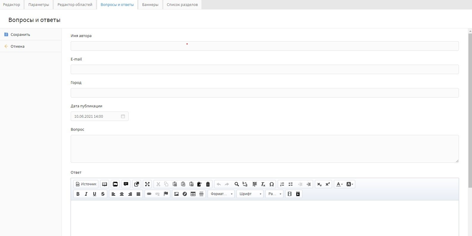 Модуль предусматривает хранение поступивших вопросов на сайте, позволяет администратору отобразить их на странице и добавить ответ. Чтобы ответить на вопрос и вывести его на сайте, надо сделать следующее: