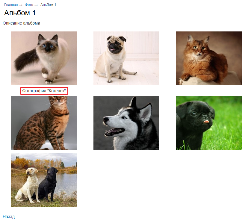 ¶ Настройка шаблонов вывода изображений в альбомах