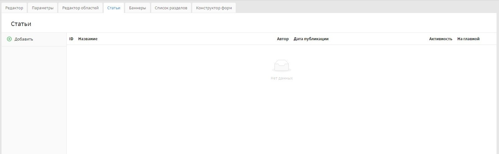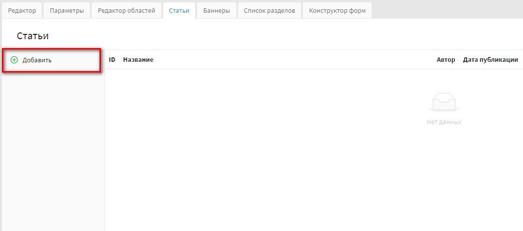 кнопка "Добавить" - при нажатии на кнопку осуществляется переход в интерфейс добавления статьи